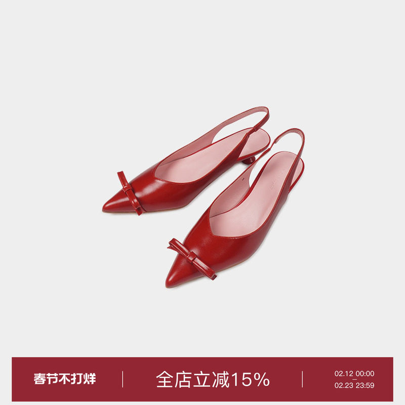 superr versatile pink three-dimensional bow decoration genuine leather pointed cat heel shoes for women