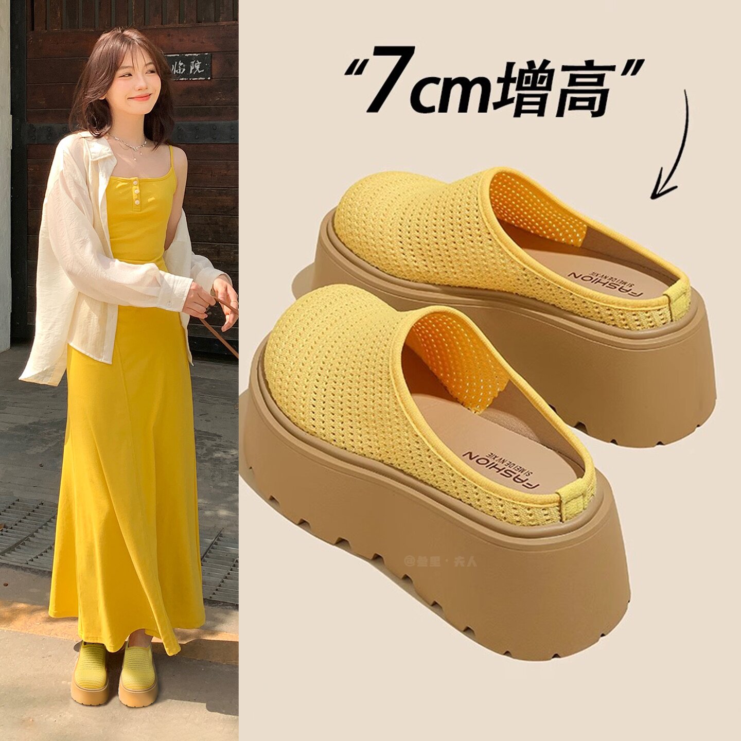 Sanli small man heightened toe half slipper women's 2026 spring/summer new style wearing hollow mesh platform sandals