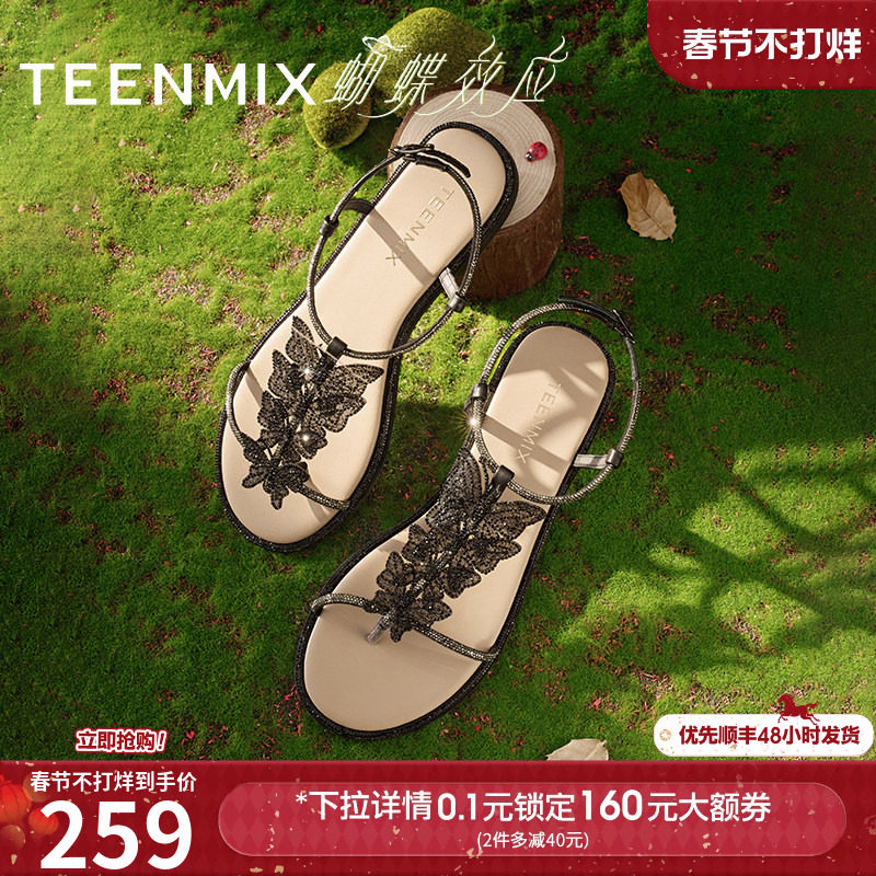Tianmei butterfly effect with rhinestone flat sandals for women wearing casual fashion sandals for summer new style
