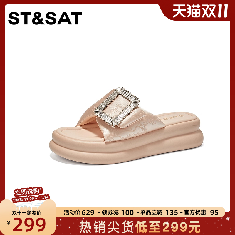 Saturday platform height-increasing sandals women's shoes wear 2025 new summer rhinestone slippers casual beach shoes