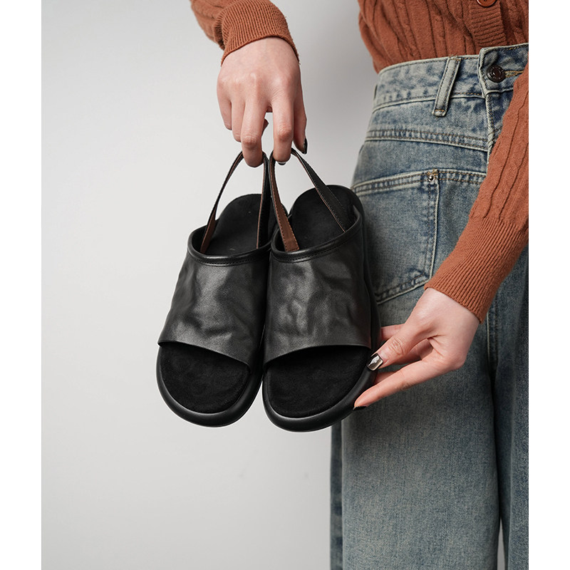 Fermina cowhide flat casual sandals women's platform summer new comfortable open-toe beach shoes for holiday trips