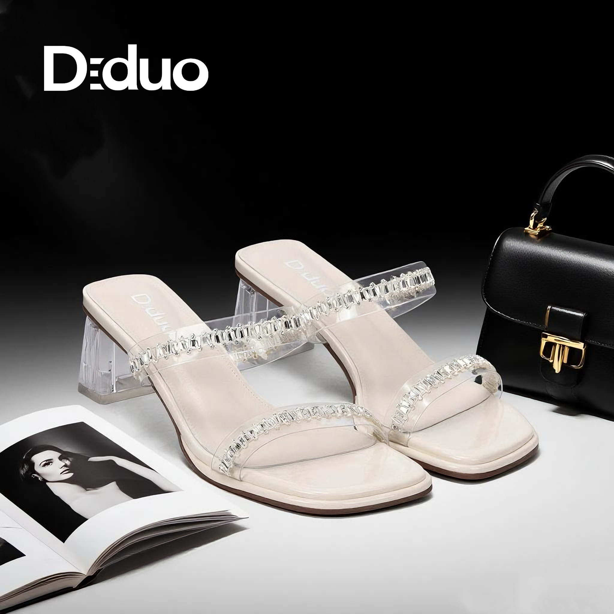 【New】Diduo/Diduo 2025 Summer New Sandals Women's Rhinestones Square Toe Open Toe Wear a String Strap