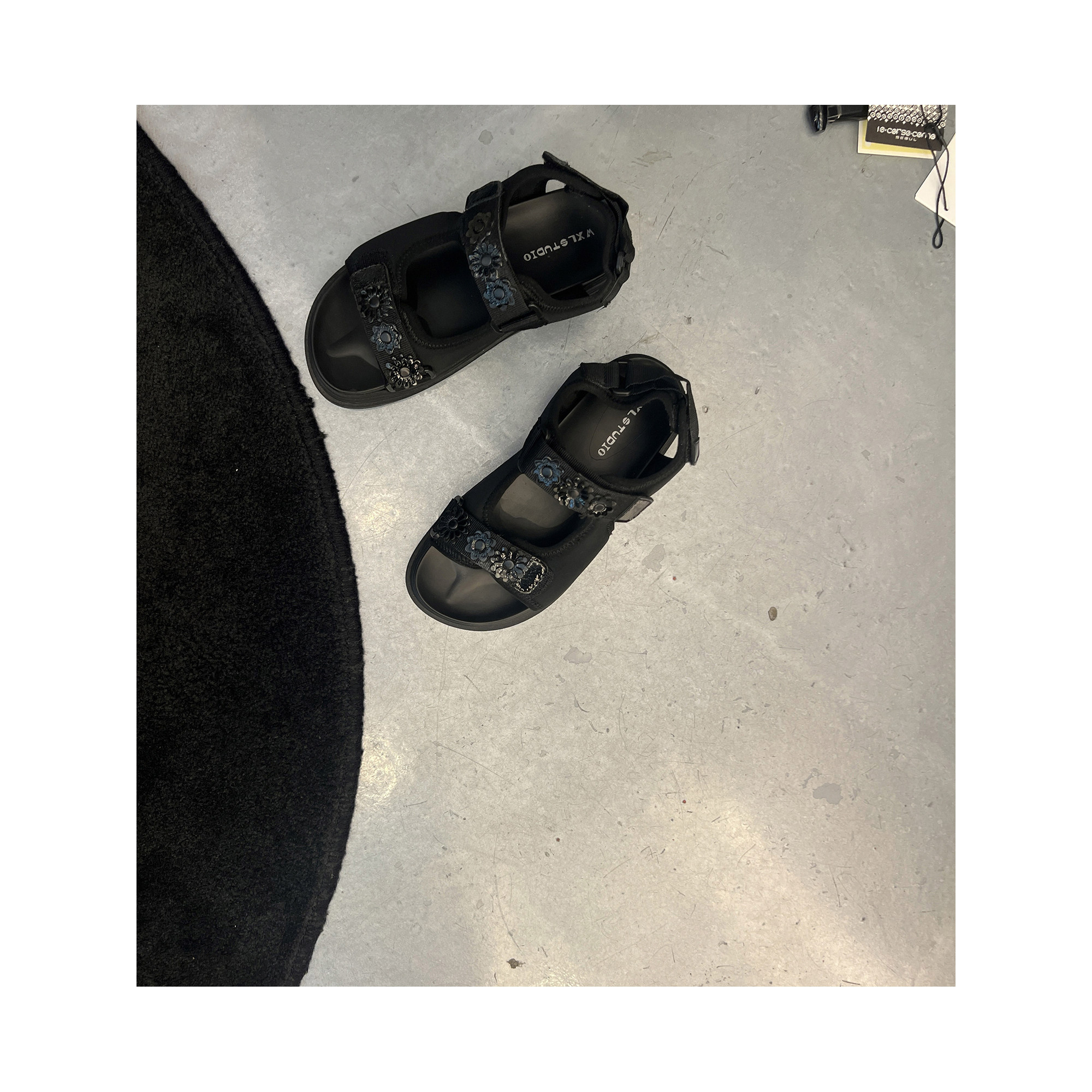 WXLSTUDIO Daily Outfit King Black Velcro Casual Sandals Women's New Flat Shoes for Summer 2025