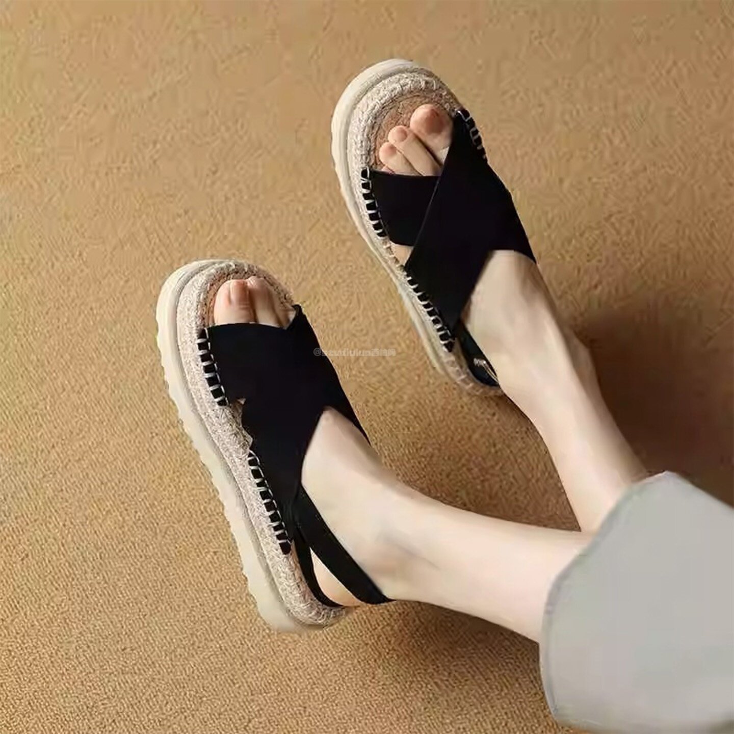 Belle knitted casual sandals women's new summer cross-strap beach Roman sandals B2651BL5