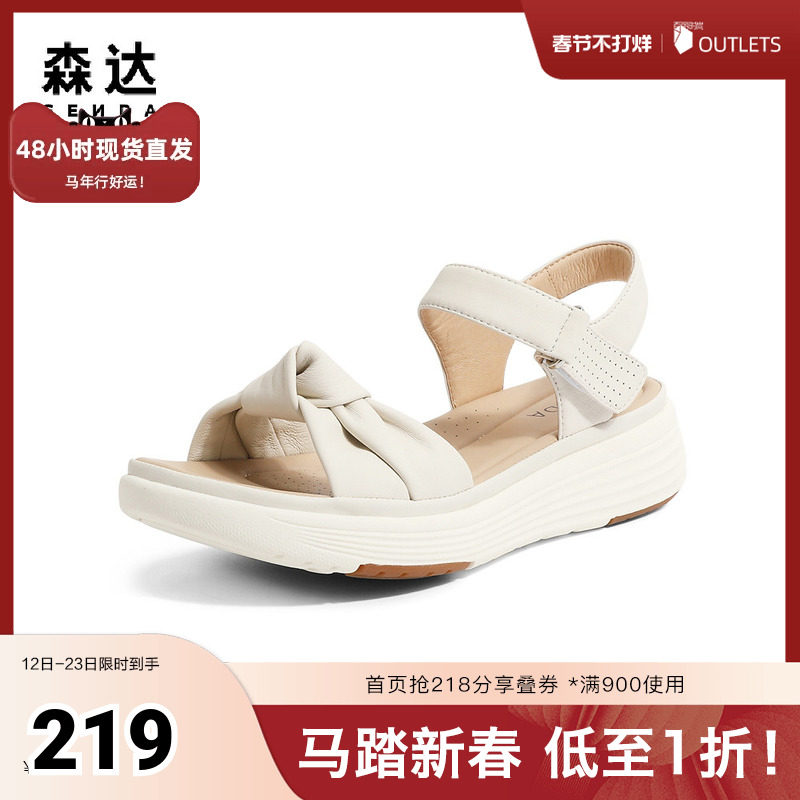 Senda leather sandals women's 2024 summer new shopping mall with the same comfortable platform SLV02BL4