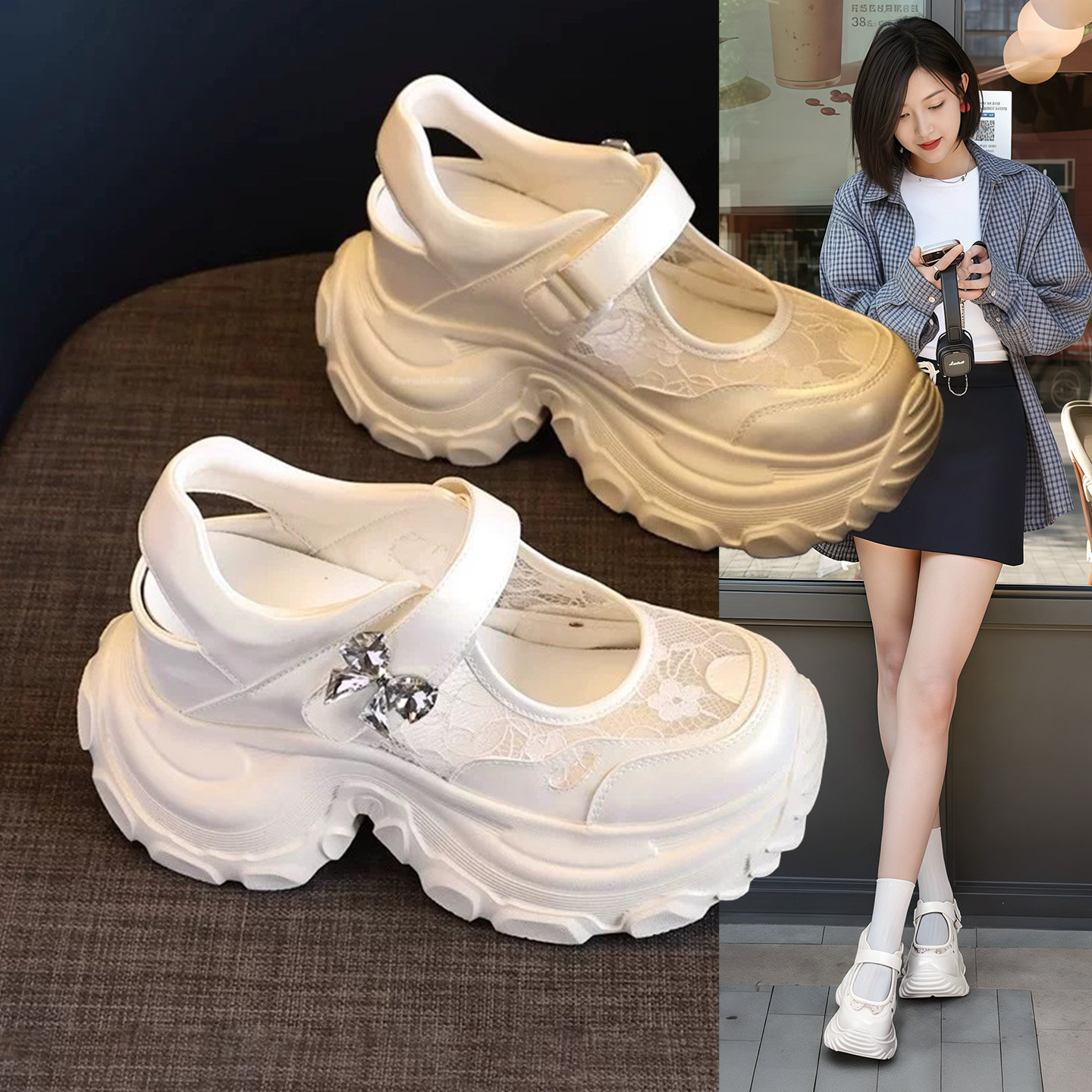 Hong Kong one-button leather muffin shoes sandals women's 2026 spring and summer wear versatile Velcro casual shoes platform shoes