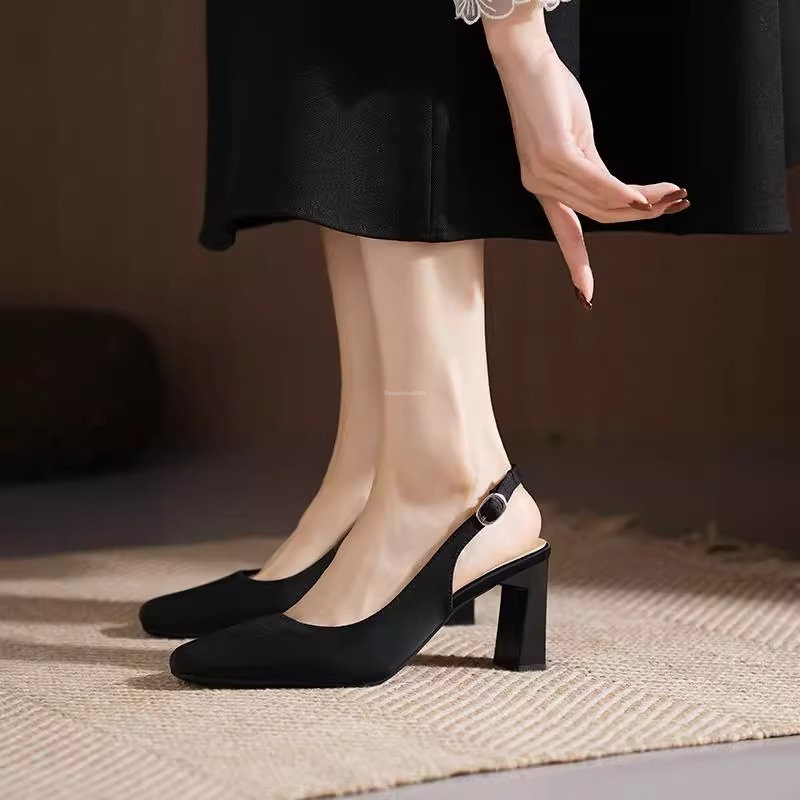Hong Kong niche design high heel women's 2026 spring/summer new temperament simple back space shallow thick heel single shoe sandals