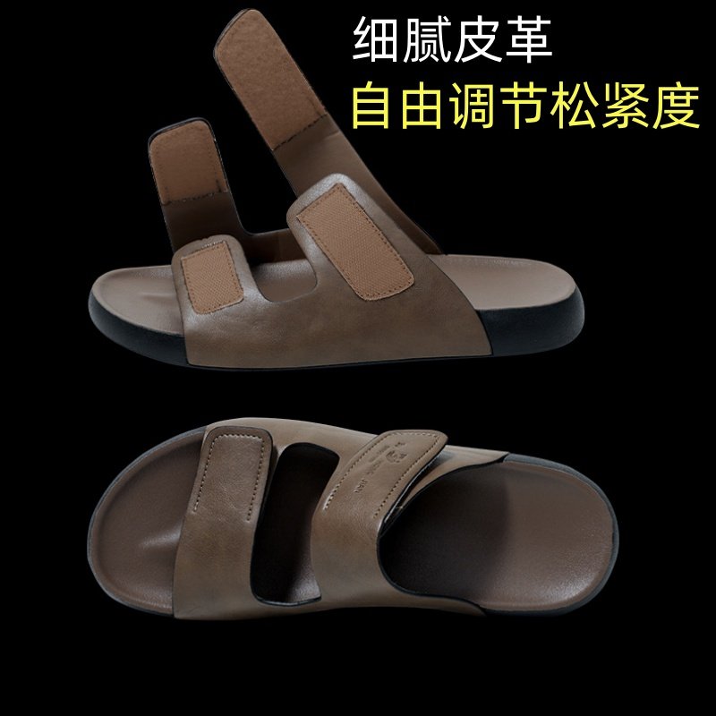 Men's leather sandals, high loose instep, Velcro, adjustable foot width, obesity, thumb valgus, big foot bone, toe injury