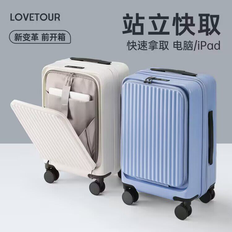 Front open lid suitcase for women, 20 inch boarding suitcase, multi-function trolley lockbox, large capacity, light and small