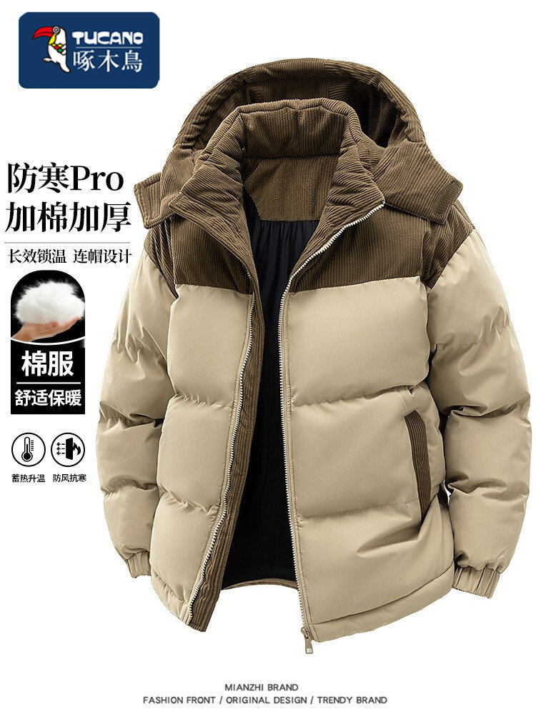 New Winter Men's Cotton Jacket, Thickened and Warm, Hooded Workwear Jacket, Trendy Versatile Casual Windbreaker for Men
