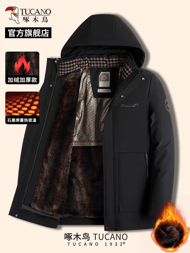 Woodpecker Brand New Winter Men's Fleece-Lined Thick Cotton Jacket for Middle-Aged and Elderly Fathers, Warm Coat Top C
