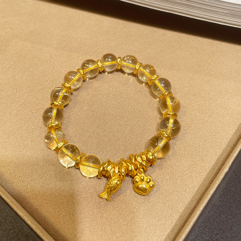 Reno Gold Little Fish Cat Claw Citrine Bracelet for Women 999 Pure Gold Unique Bracelet Valentine's Day Gift for Girlfriend