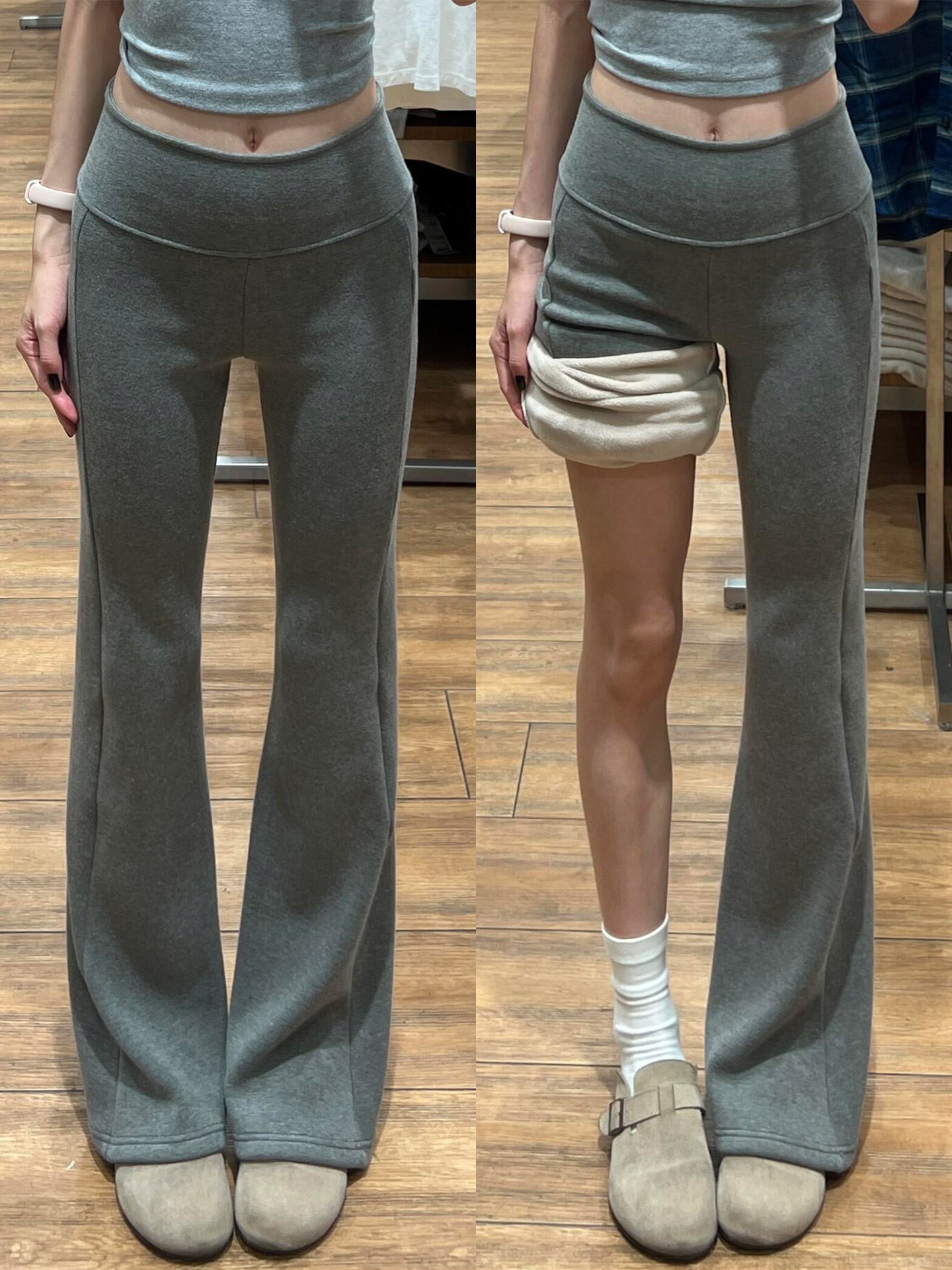 Lulu Flared Pants for Women, Autumn and Winter, Fleece-Lined, Low-Waisted, Drapey, Outerwear Leggings, Petite, Sports Yoga Bell-Bottom Sweatpants