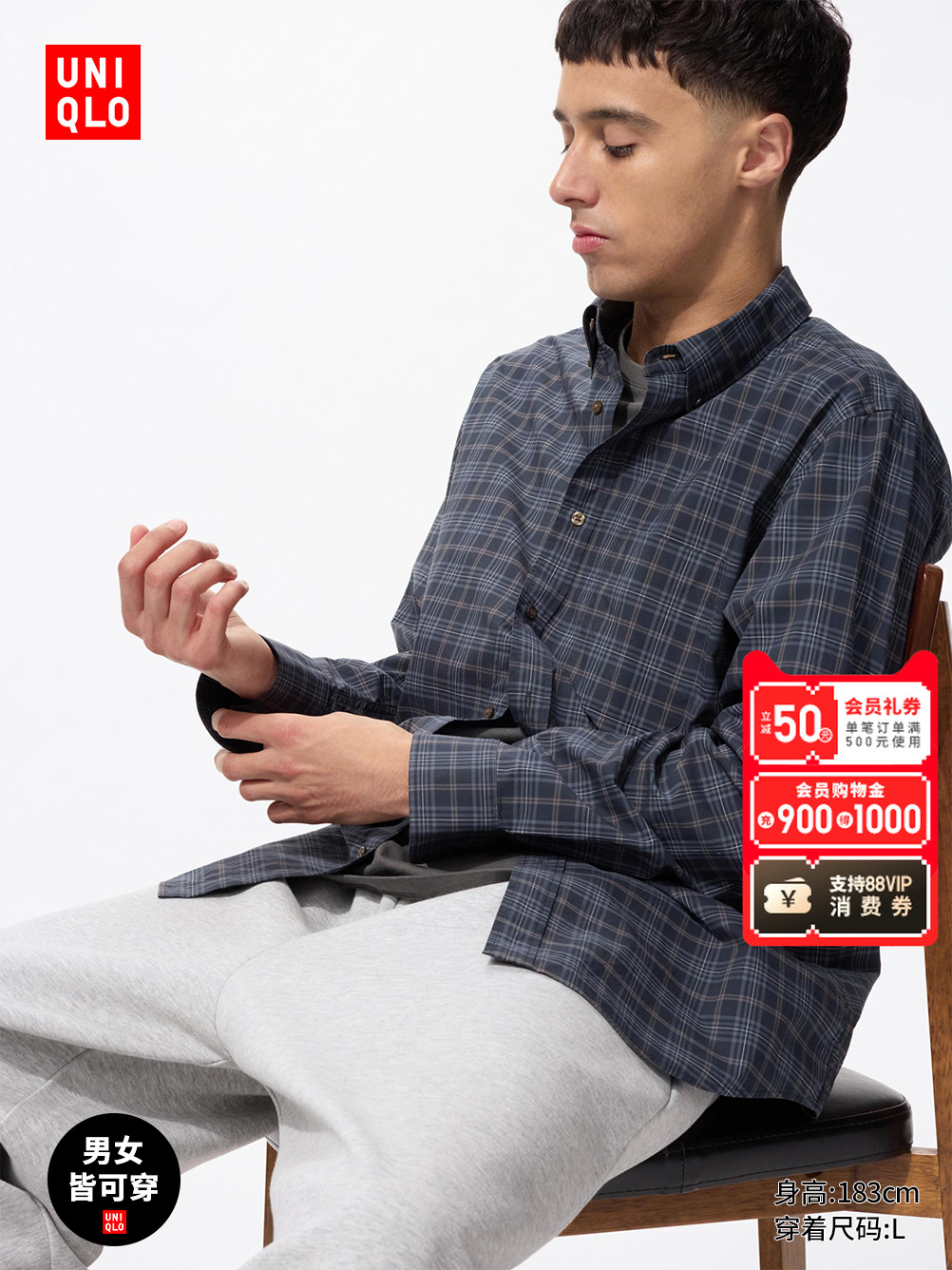 Uniqlo Men's and Women's High-Quality Long-Staple Cotton Plaid Shirt Long-Sleeved Shirt Casual Pure Cotton 25 Autumn and Winter 480651
