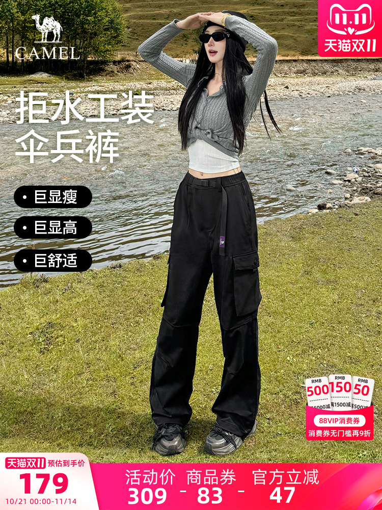 Camel Outdoor Casual Mountain and Sea Work Pants for Women 2025 Spring New Straight Loose Water-Repellent Hiking Pants