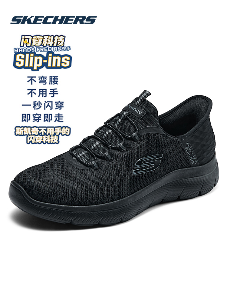 Skechers Men's Shoes Autumn and Winter New Sports Shoes Men's Black Running Shoes Official Slip-On Shoes for the Elderly