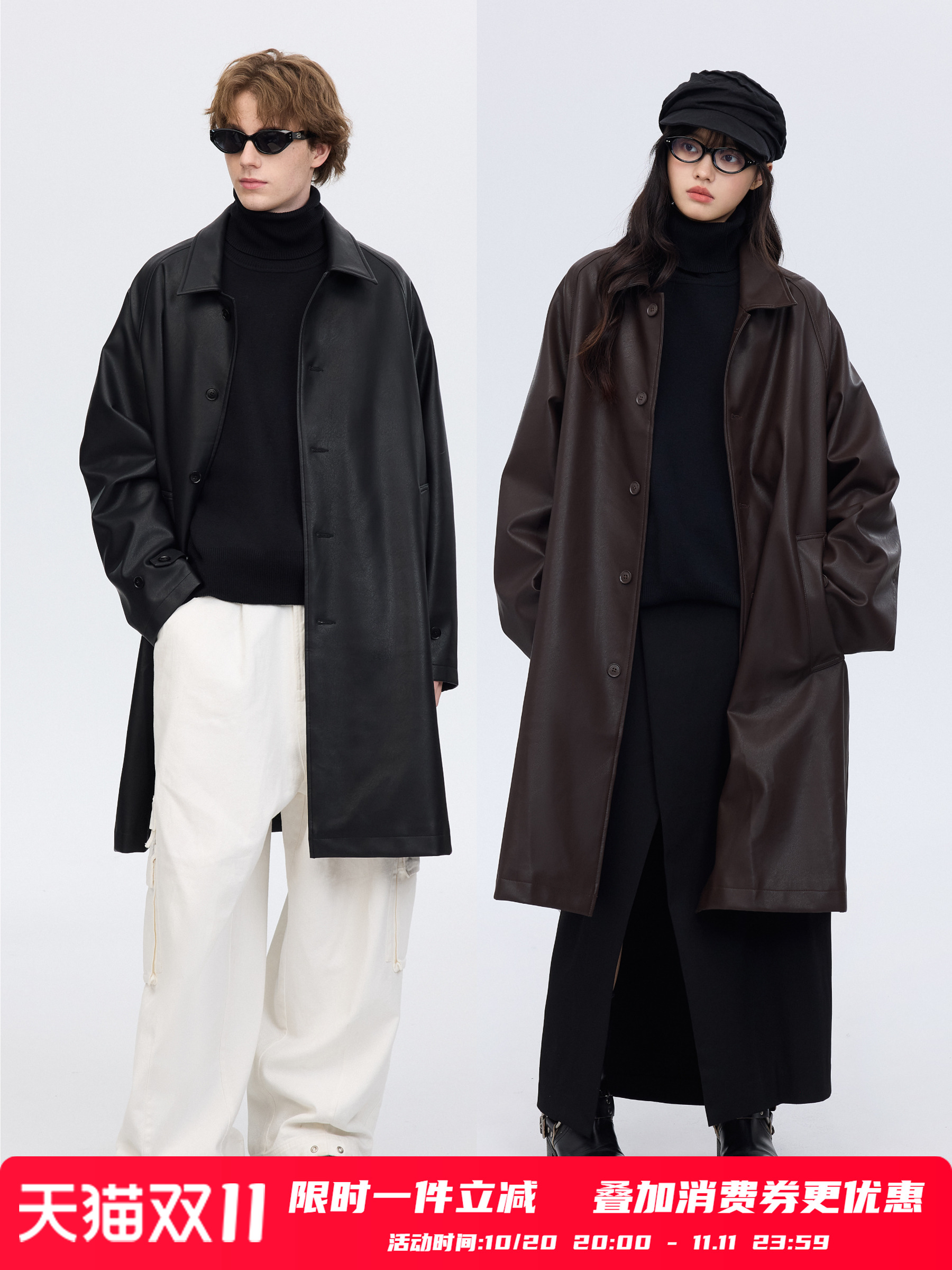 Pso Brand Men's and Women's Glossy Pu Mid-Length Coat Autumn and Winter Leather Jacket Melard High-End Feel Outerwear