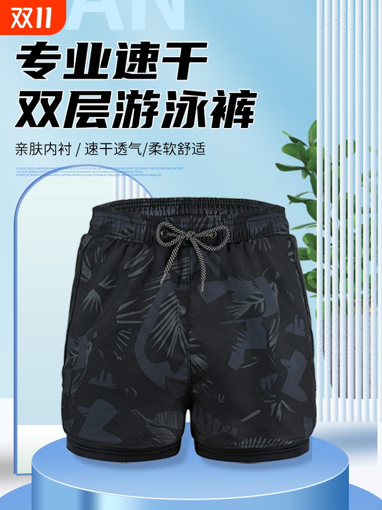 Swimming Trunks, Men's Swimsuit, Swimming Cap, Three-Piece Set, Men's Hot Spring Anti-Embarrassment Beach Shorts, Men's Swimming Equipment Complete Set