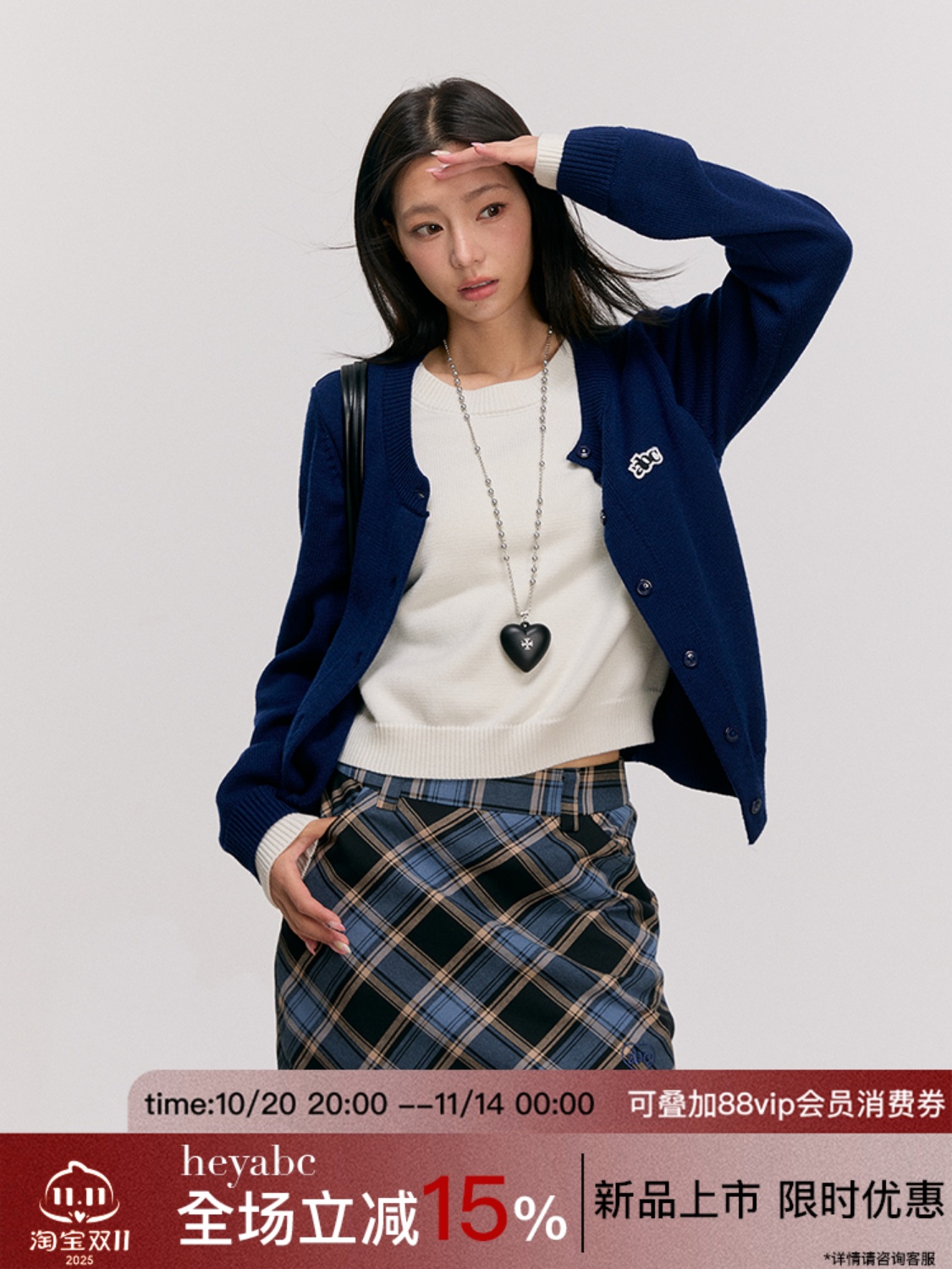 Heyabc Spring and Autumn Korean Style Round Neck Fake Two-Piece Knit Sweater for Women, Sweet and Youthful, Versatile, Elegant, Lazy Style Sweater