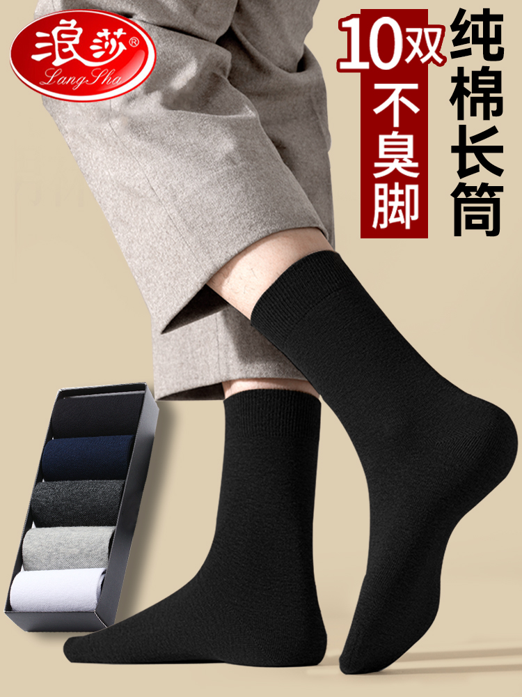 Langsha Men's Socks, Pure Cotton, Long Tube, Thick for Autumn and Winter, 100% Cotton, Odor-Resistant, Sweat-Absorbent, Men's Black High Tube Socks