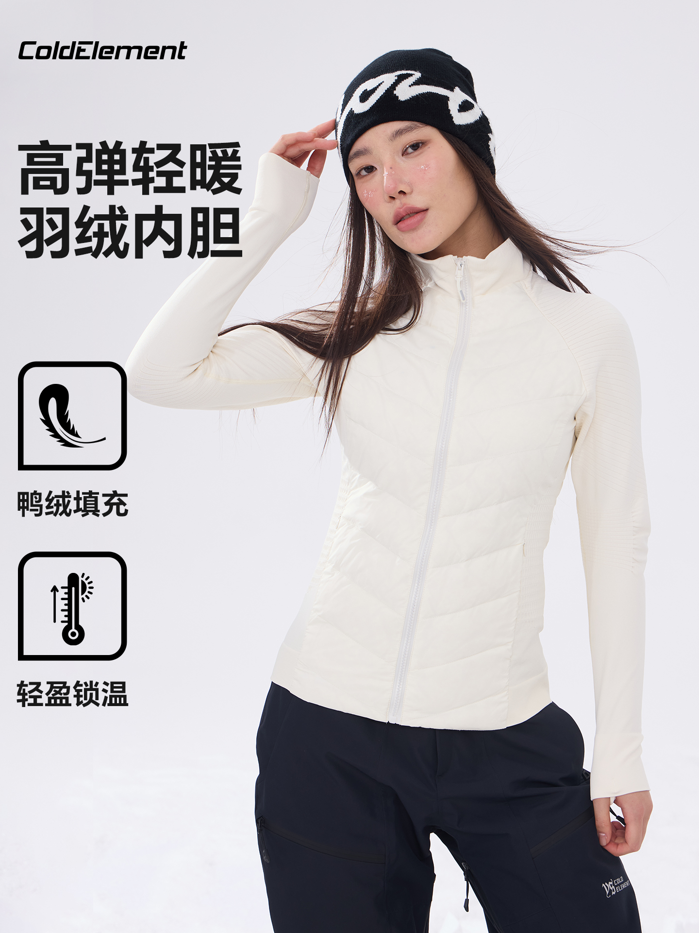 Coldelement Ski down Liner Women's Autumn and Winter Jacket Mid-Layer Slim Fit Warm Base Layer