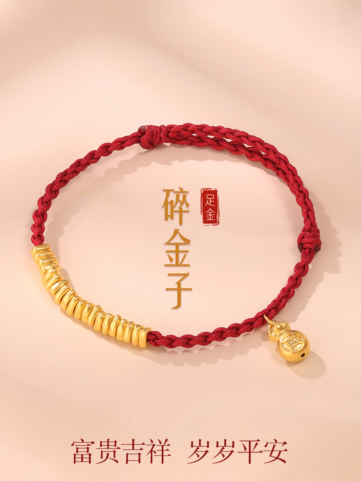 Gold Coil Bracelet with Broken Gold Pieces, Pure Gold 999 Bracelet, Gold Coil Bangle, Birth Year Fortune Bead, Red String Bracelet