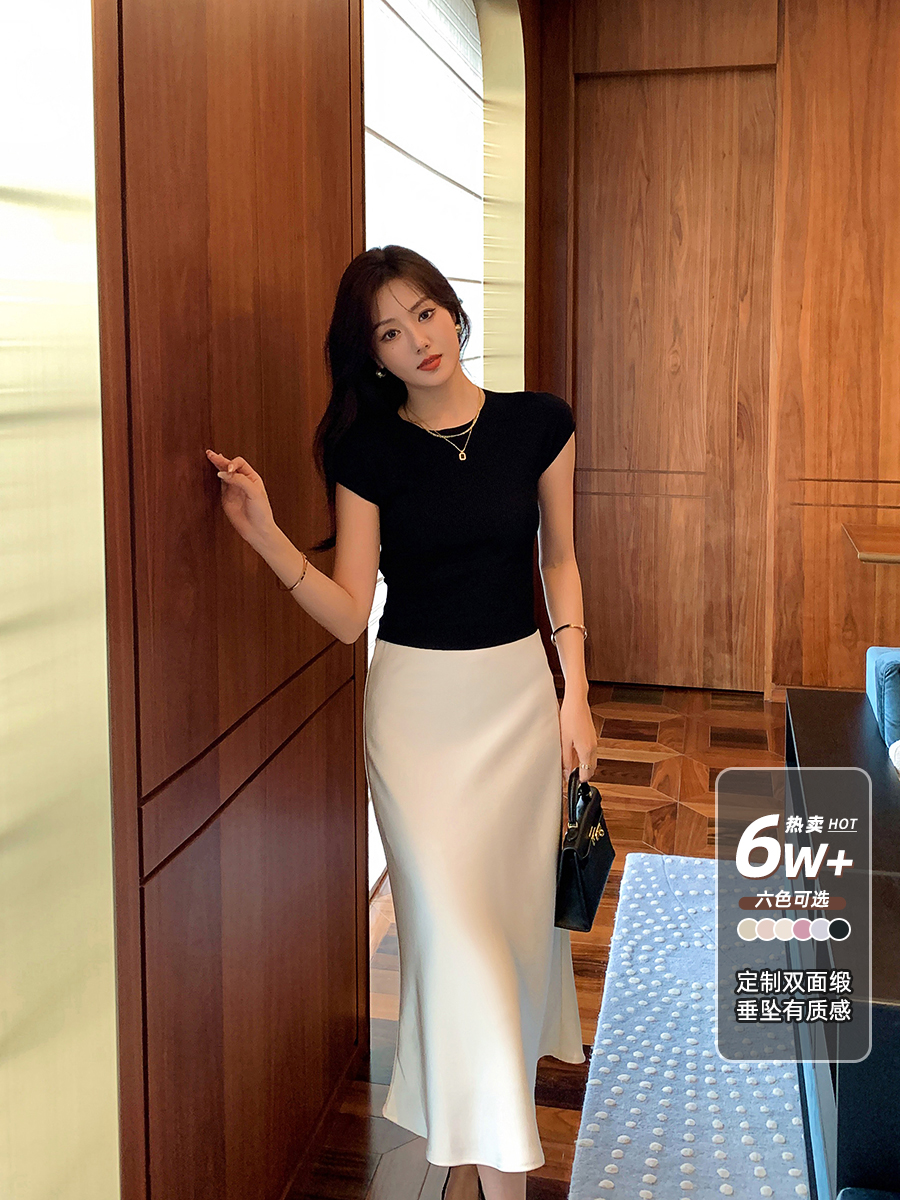 Island Song Lady's Hip-Hugging Satin Fishtail Skirt, Mid-Length Skirt for Women, Summer Design, Niche High-Waisted Skirt