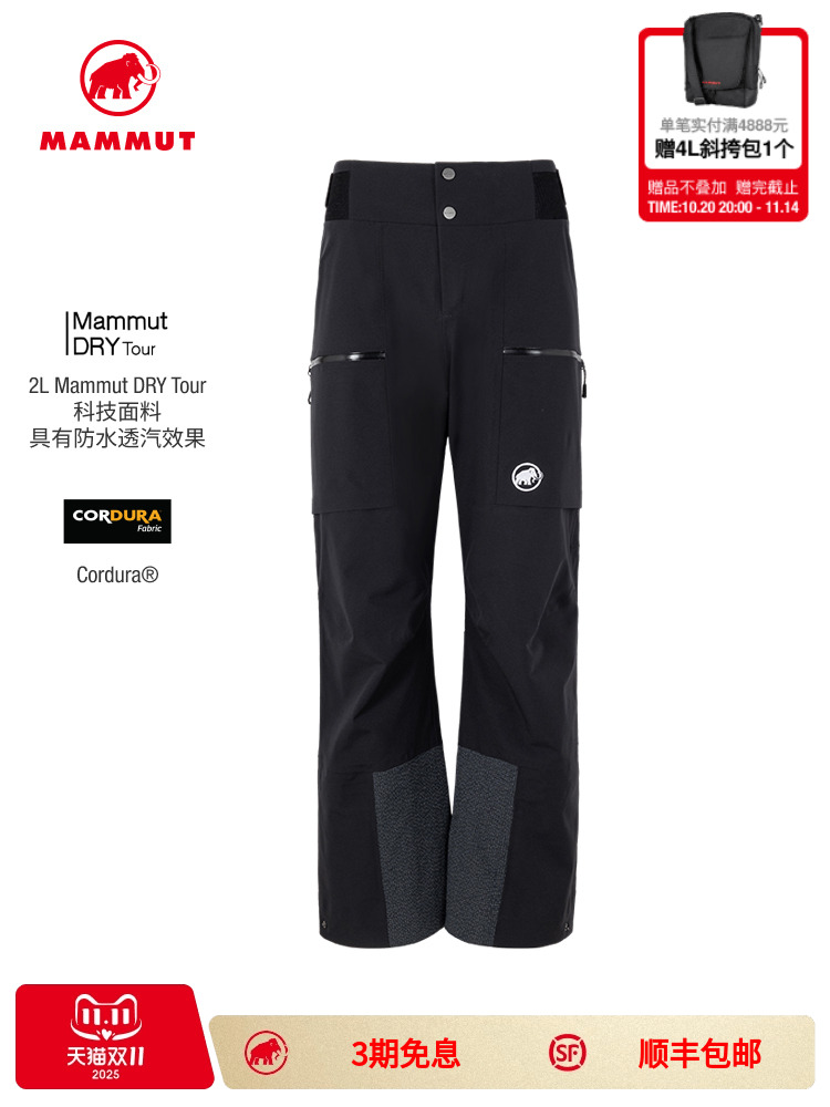 Mammut Stoney Men's Outdoor Sports Ski Waterproof Side Zipper Hard Shell Assault Pants Ski Pants
