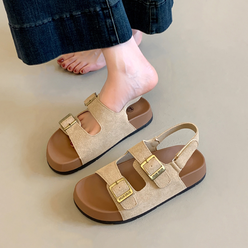 Velcro Thick-Soled Birkenstock Sandals for Women, Summer Outerwear, 2025 New Versatile Style, Suitable for Pregnant Women, Comfortable Beach Roman Shoes