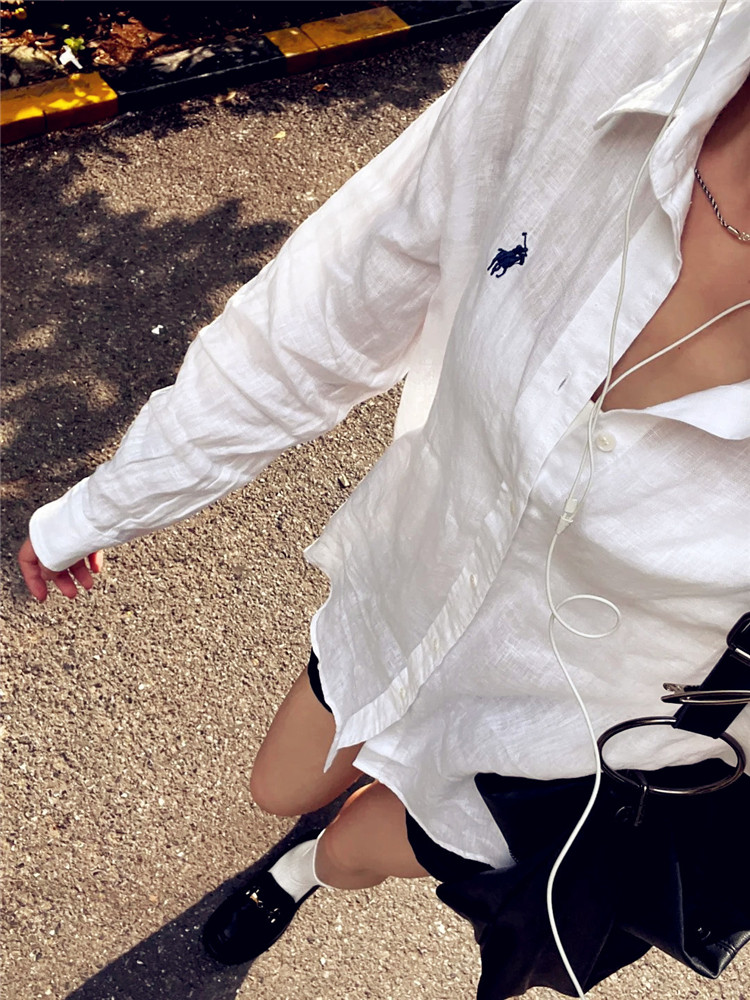 Sun Protection White Shirt Jacket for Women, Summer Thin Outerwear Cardigan, Loose Long-Sleeved Top, Pure Cotton Linen Shirt