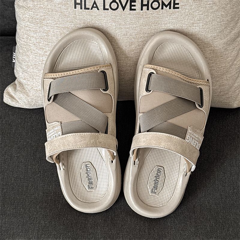 Beach Shoes 2025 New Summer Style Versatile Sandals for Men, Breathable Men's Trendy Niche Thick-Soled Casual Shoes