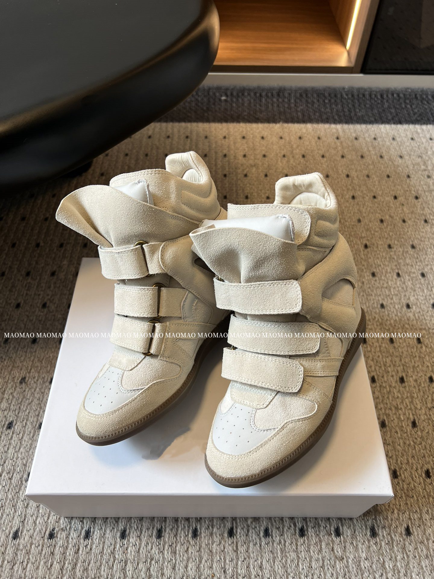 Hong Kong Genuine Leather Platform Thick-Soled Fleece-Lined High-Top Shoes for Women 2025 Spring and Autumn Sports Round-Toe Height-Increasing Comfortable Casual Sneakers