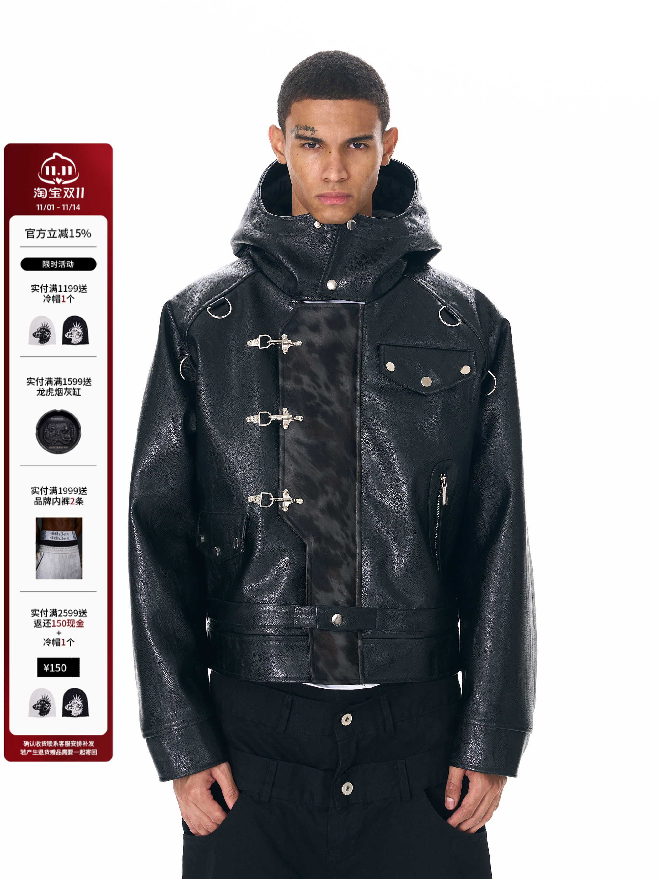 Fourth3Ex 25 Fw Leopard Print Pu Leather Cotton Jacket Men's Winter Padded Thickened Cotton Coat with Snap Buttons Jacket