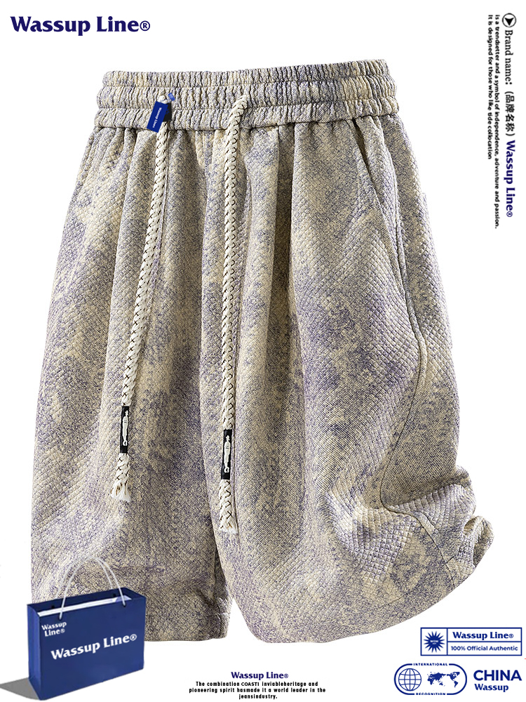 Wassup Line Trendy American-Style Tie-Dye Casual Shorts for Men, Summer Cool Loose Large Size Sports Shorts