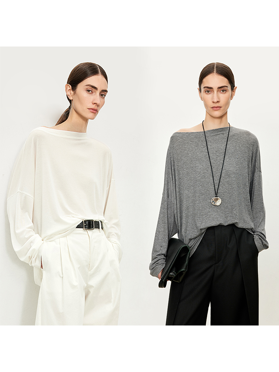 Chicjoc Skin-Like Soft Drape High-Elasticity Tencel Wool Knit Multi-Wear Off-Shoulder Batwing Sleeve Air Mask T-Shirt