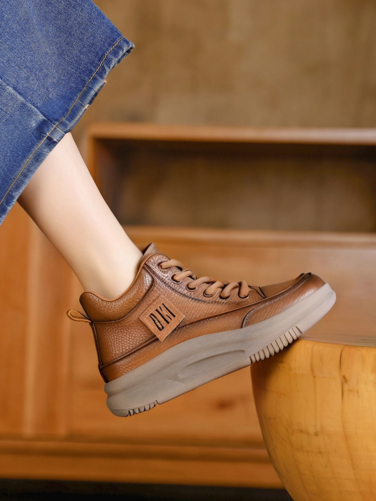 First-Layer Cowhide Leather with Fleece Lining, Lightweight Thick-Soled Genuine Leather Martin Boots for Women, 2025 New Autumn and Winter Brown High-Top Short Boots