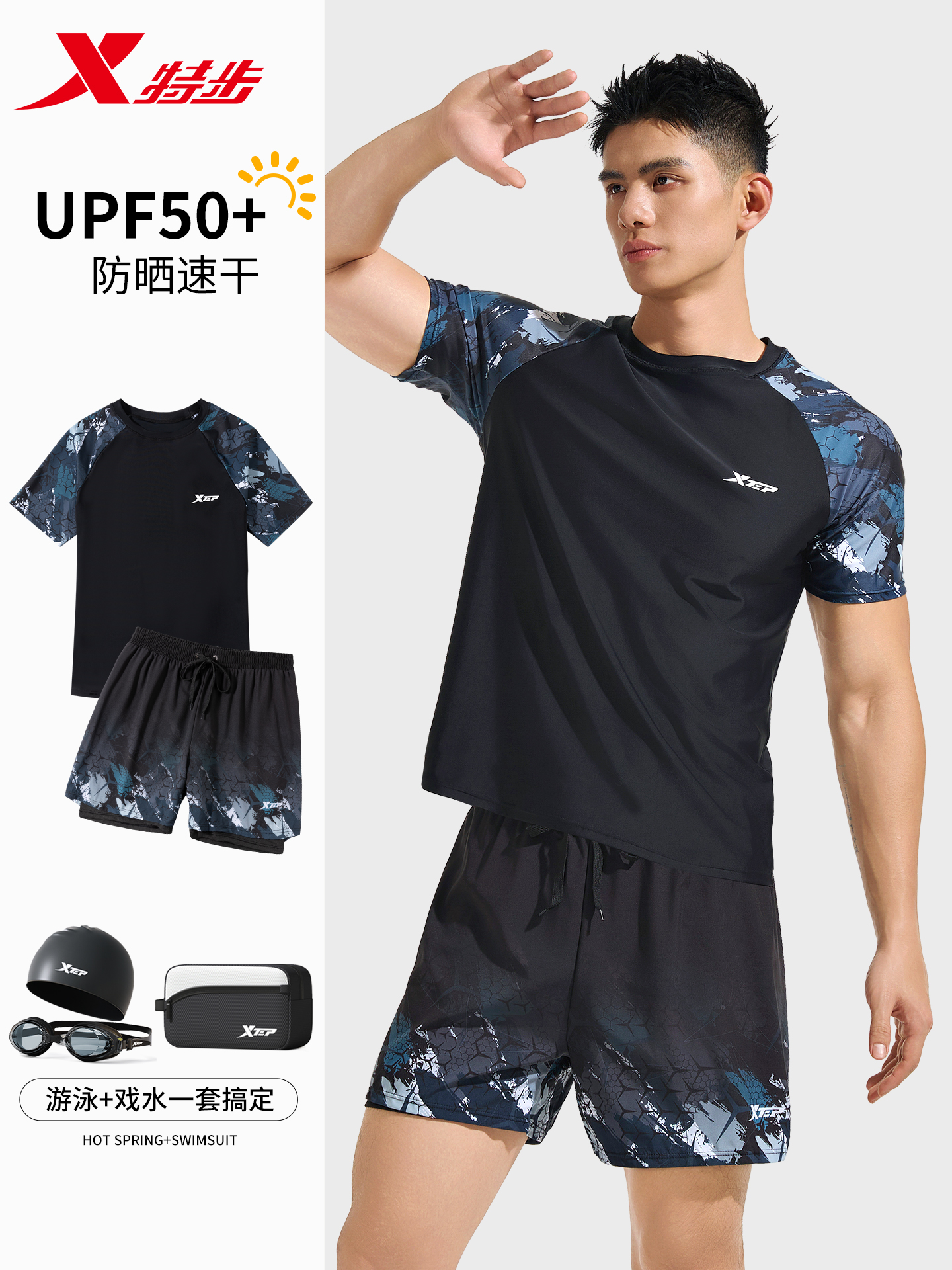 Yongiant Blue and White Color-Blocked Low-Waist Letter Print Swim Trunks Style Underwear Yg25004