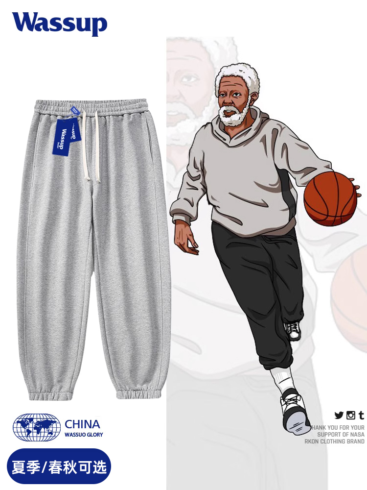 Wassup Dosen Gray Sweatpants for Men, Spring and Autumn, Trendy Brand, Thin Style, Jogger Pants, Sports Casual, Unisex