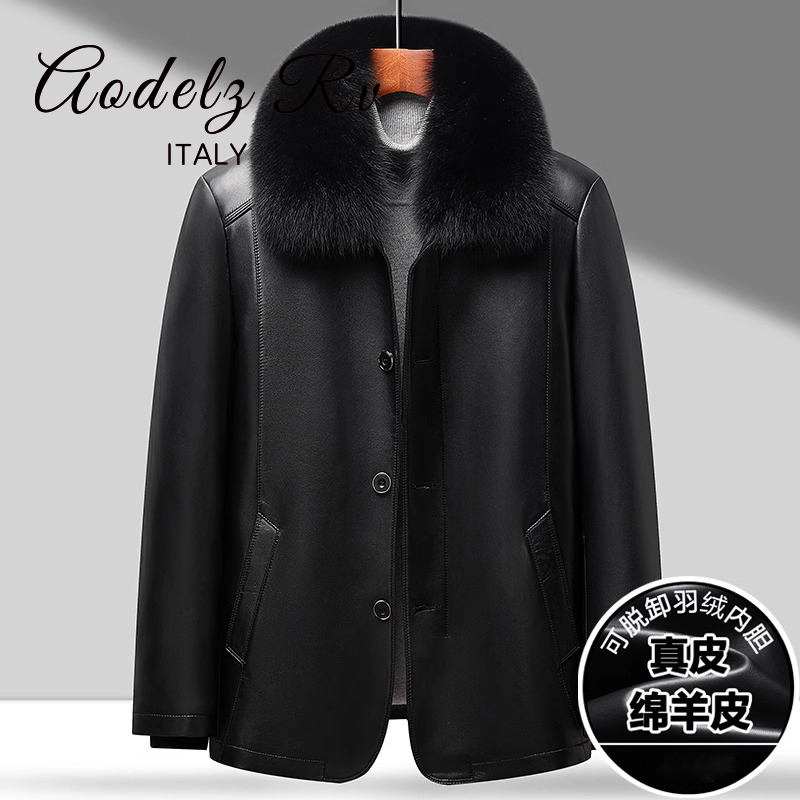 Genuine Leather Jacket for Men, Casual Sheepskin Mid-Length down Jacket for Autumn and Winter, Suitable for Middle-Aged and Elderly Fathers and Grandfathers