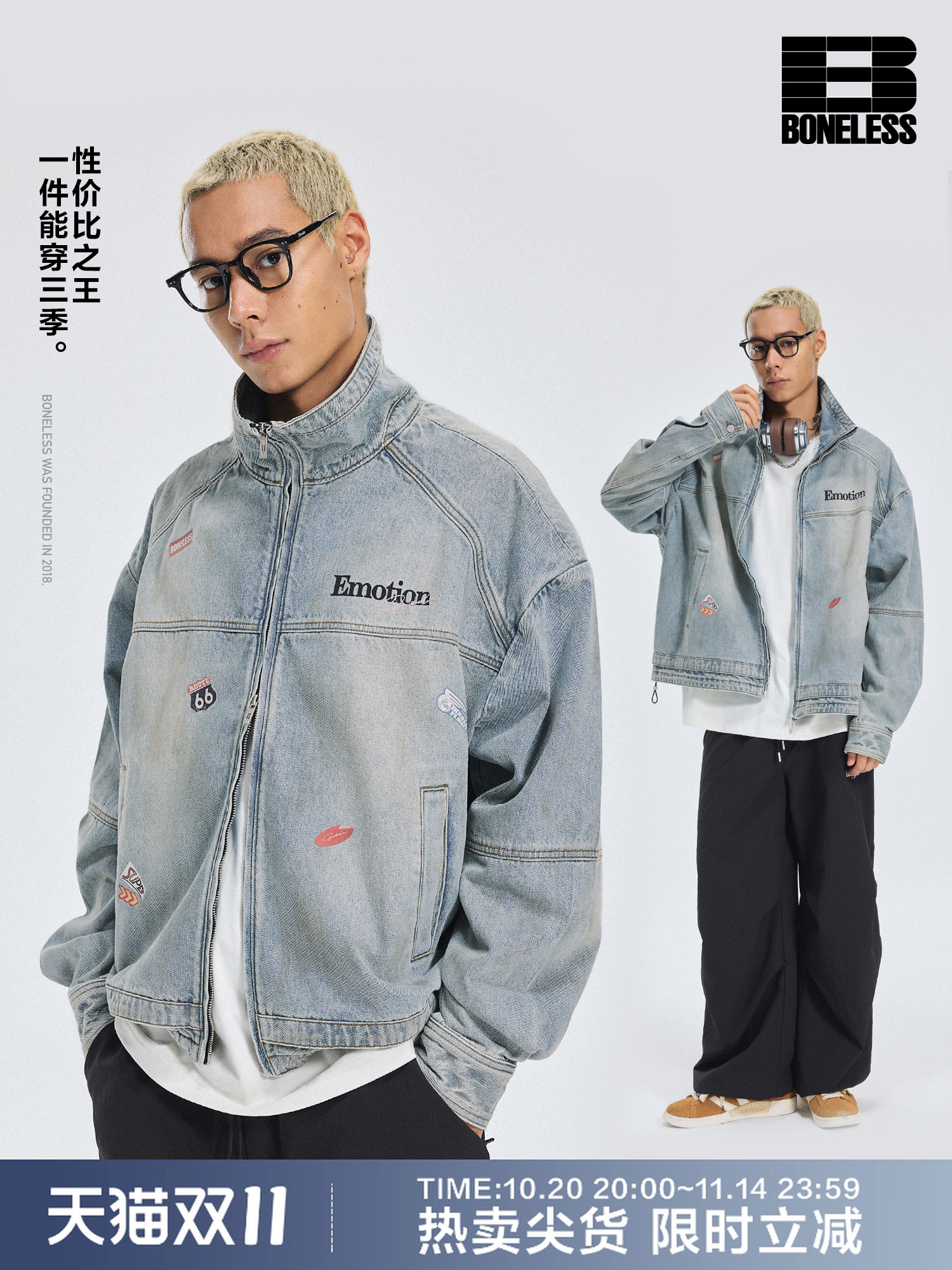 Wearandtear Detachable Fur Collar Stand-Up Collar Adjustable Strap Metal Buckle Punk Sand-Washed Jacket Padded Coat