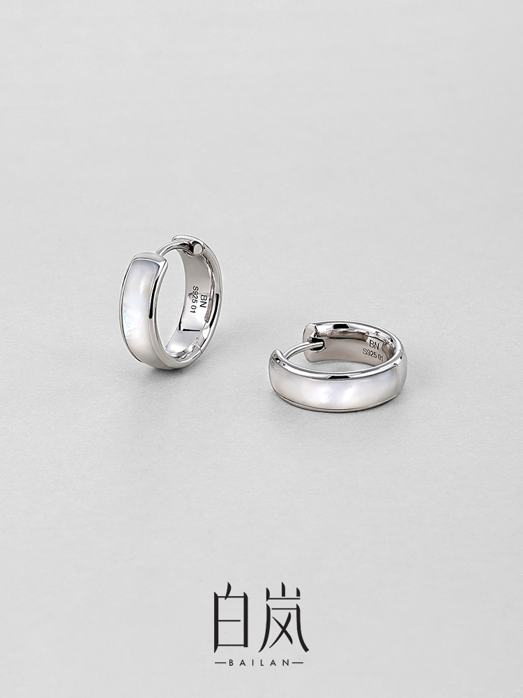 White Lan White Beige Hoop Earrings Light Luxury Niche 925 Silver Earrings for Women 2024 New Popular Style Exquisite Ear Clips Ed4306