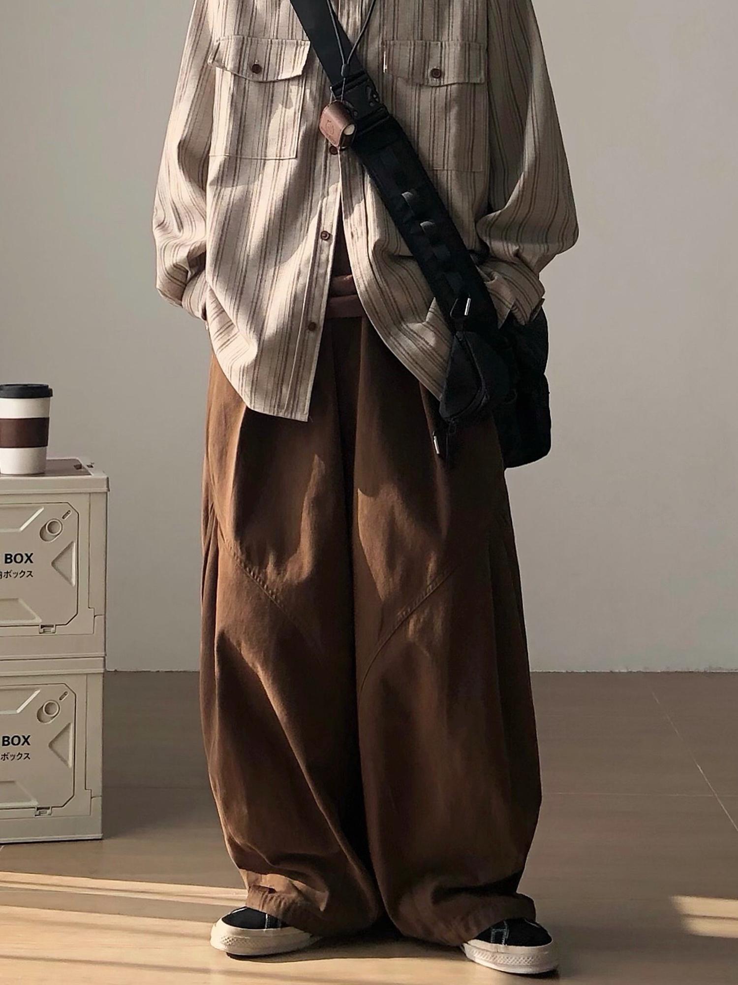 Richman Japanese Style Coffee-Colored Loose Wide-Leg Cargo Pants for Men, Spring and Autumn American Retro Casual Pants