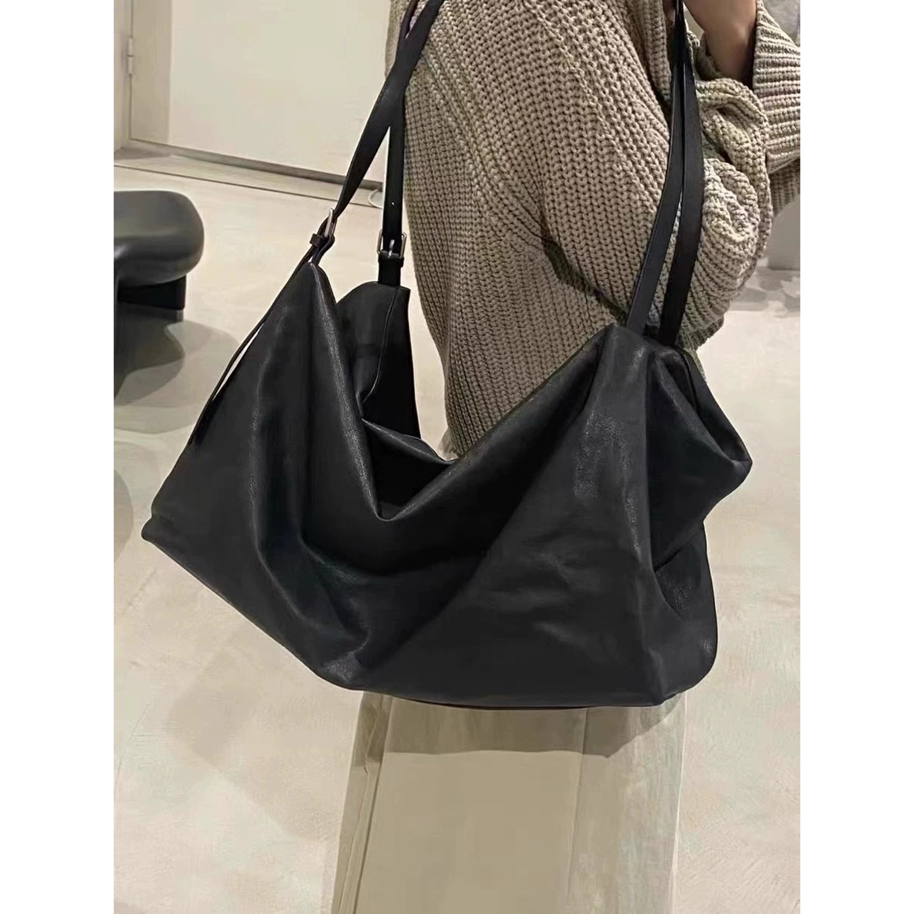 Yp Soft Cowhide Large-Capacity Tote Bag Yearly Plan Designer Oil Wax Leather Shoulder Bag with Texture Casual Women's Bag