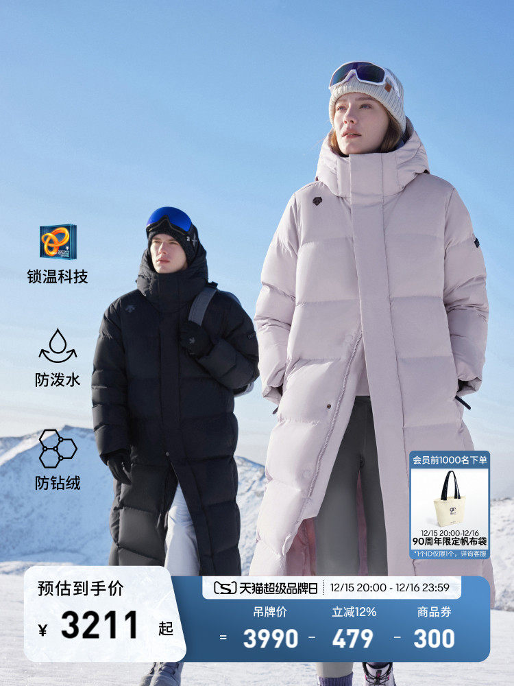 Descente Desante Men's and Women's Heat Navi Long Water-Repellent Goose down Warm Sports down Jacket