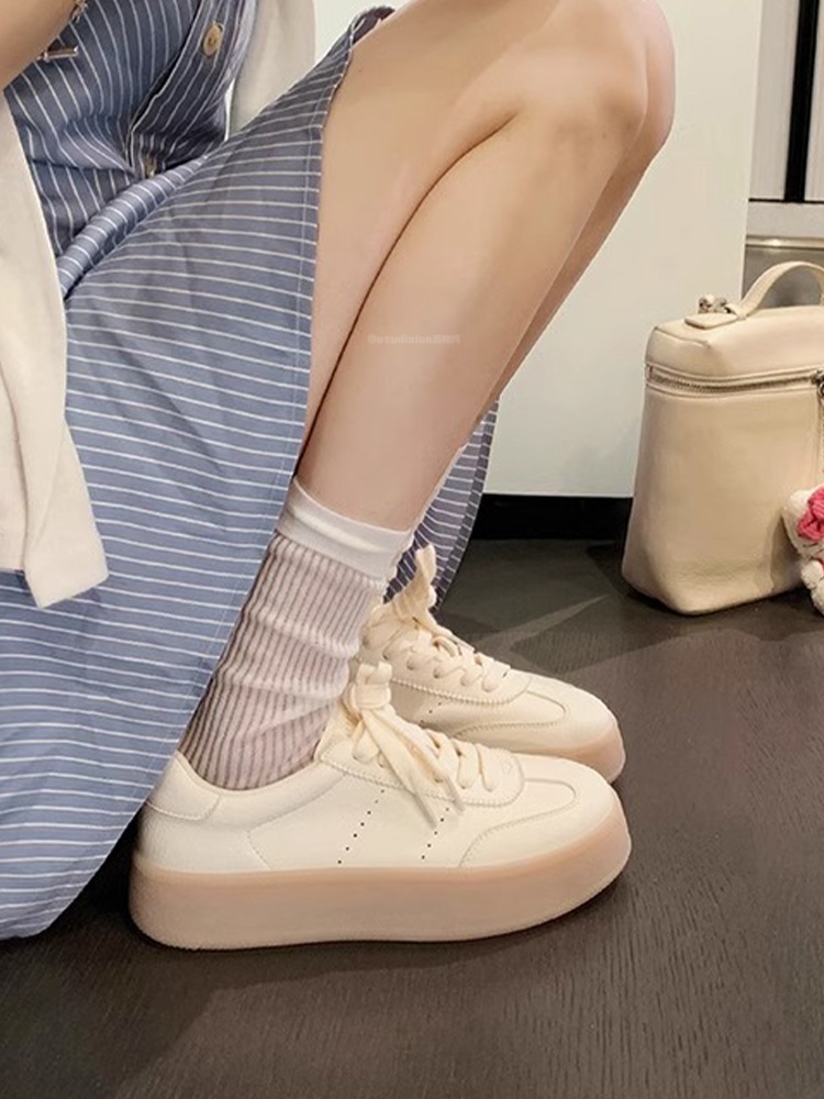 Hong Kong Genuine Leather Thick-Soled Height-Increasing White Sneakers for Women 2025 Spring and Autumn New Versatile Lace-Up Sports Casual German Training Shoes