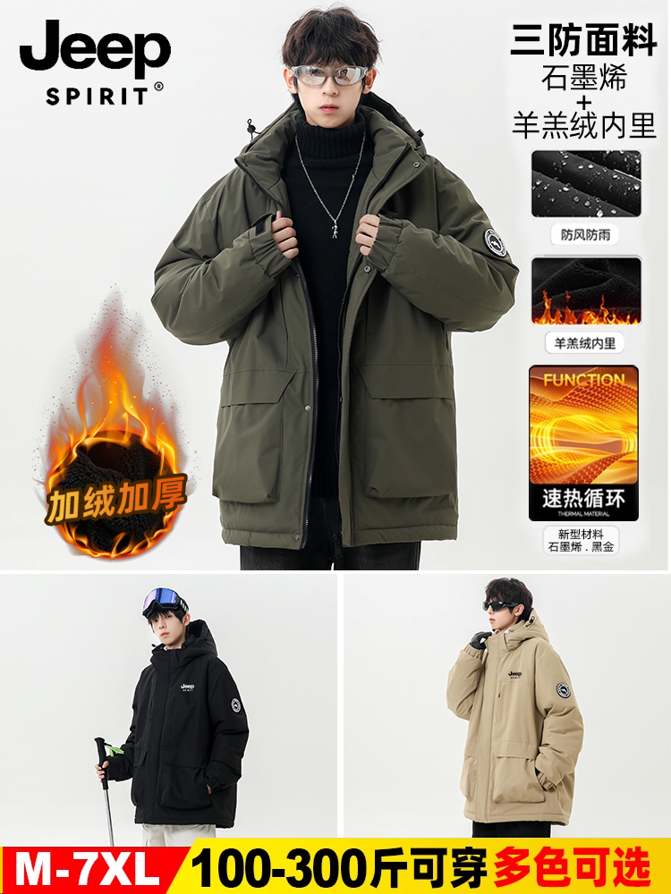 Jeep Workwear Cotton Jacket for Men, Winter 2025 New Graphene Warm Cotton Coat with Hood, Large Size Men's Cotton Jacket