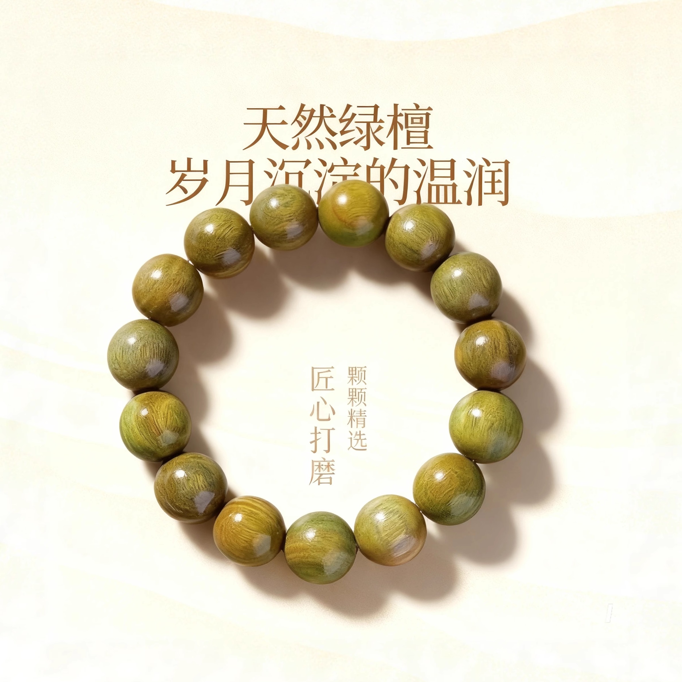 Putuo Mountain Natural Green Sandalwood Bracelet for Women, Sandalwood Beads for Play, Buddhist Prayer Beads, New Chinese Style National Poetry