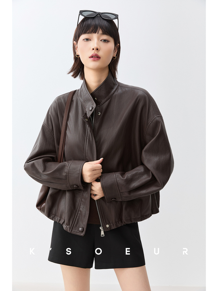 K Sister Ksoeur【Beloved Leather Jacket】Protein Leather Ultra-Soft Short Casual Jacket Leather Coat for Autumn Women