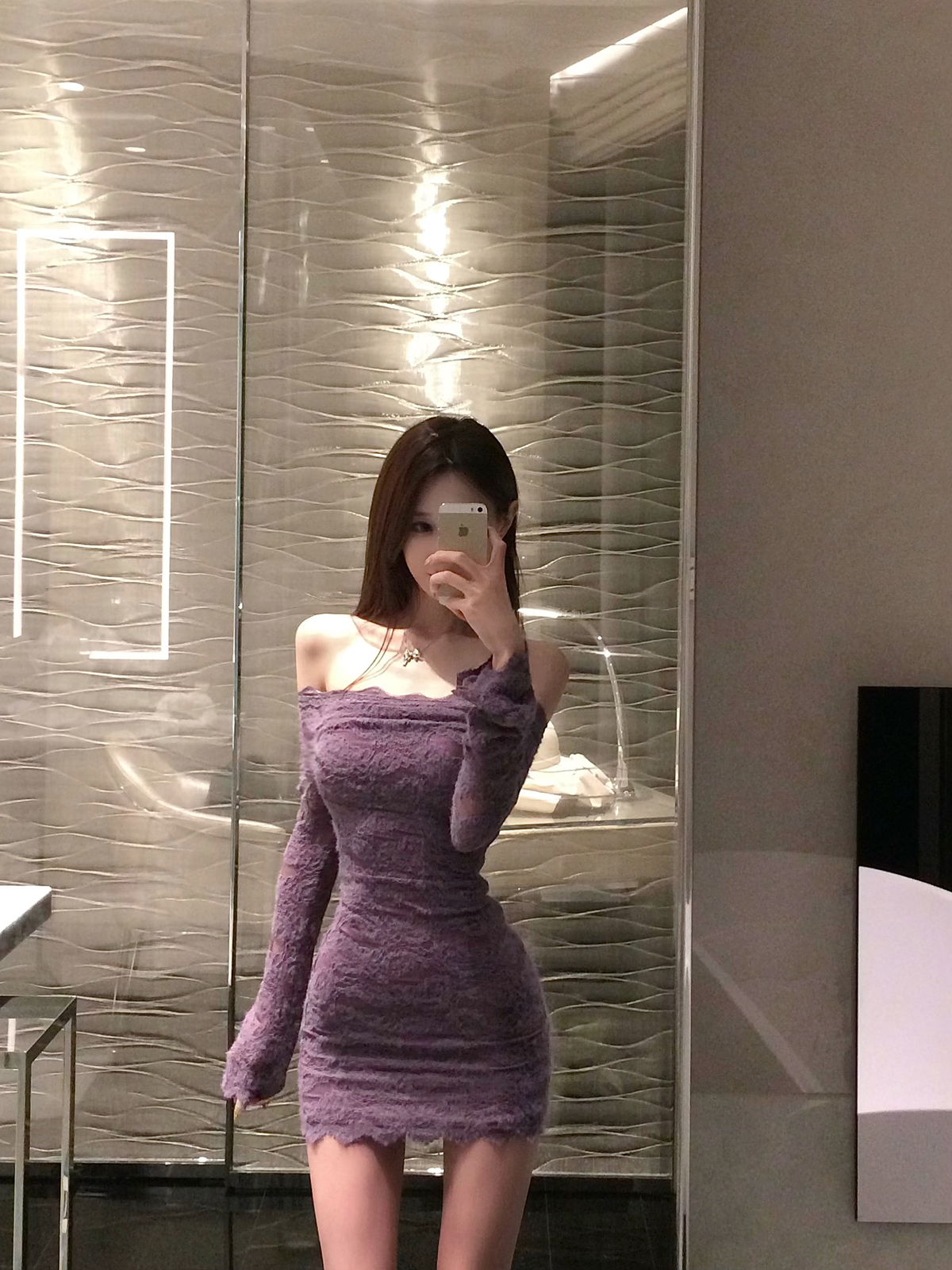 Mr. Du's Home, Old Soul Beauty* Original Purple Embroidered Brushed Lace Elegant Sister-Style Figure-Flattering Bodycon Dress