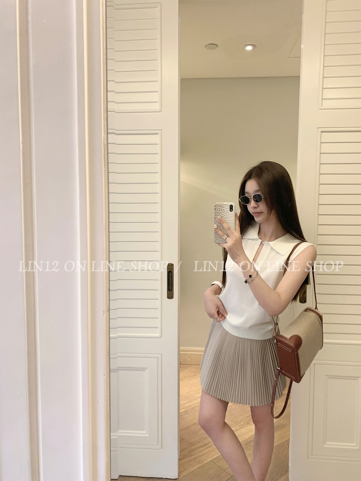 Lin12_ Vitality up Summer Pleated Skirt Women's Lightweight High-Waisted College Style Apricot A-Line Organza Short Skirt